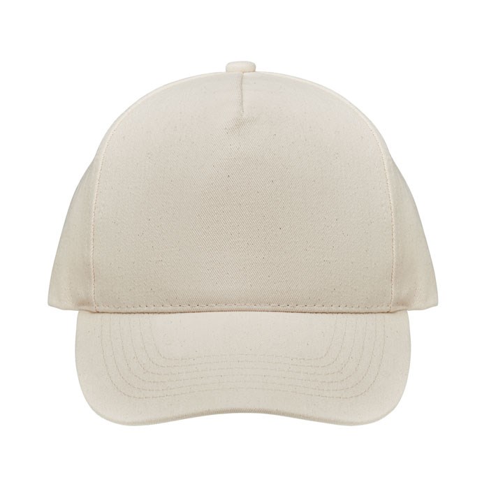Baseballpet met 5 panelen, van 250 gr/m² organische geborsteld katoen met metalen verstelbare gespsluiting.