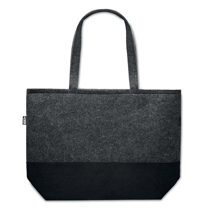Boodschappentas van RPET vilt met lange draaghengsels en gekleurde bodem.meer