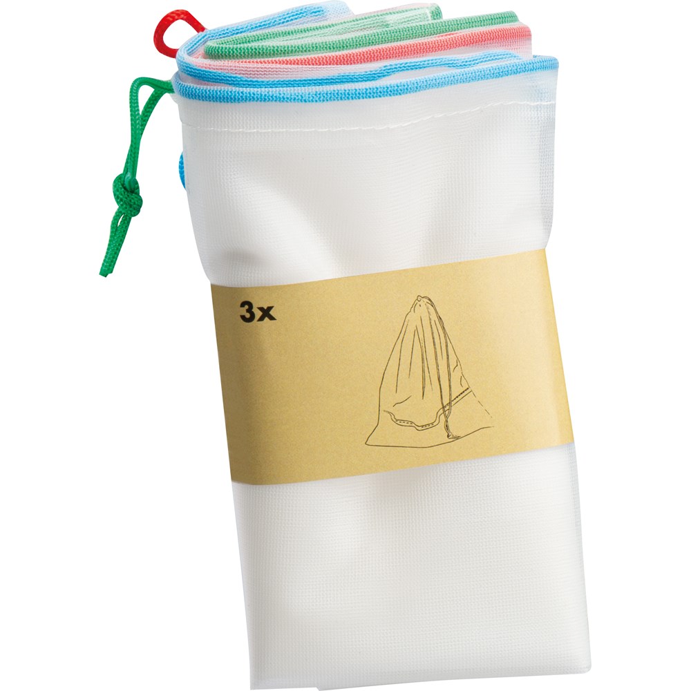 Perfecte duurzame winkelgenoot, niet alleen voor groenten en fruit. De set van 3 bestaat uit PET...meer