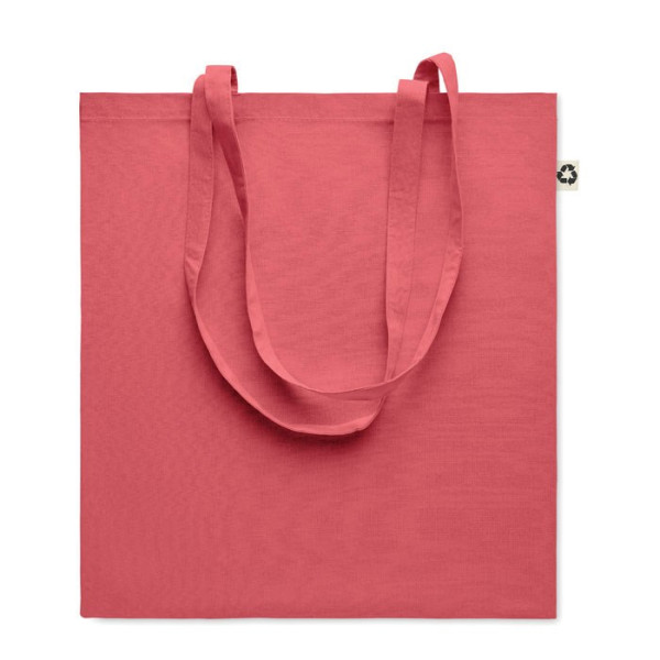 Gerecyclede post-consumer katoenen boodschappentas (65% gerecycled katoen, 35% gewone katoen) met lange hengsels. 140 gr/m².