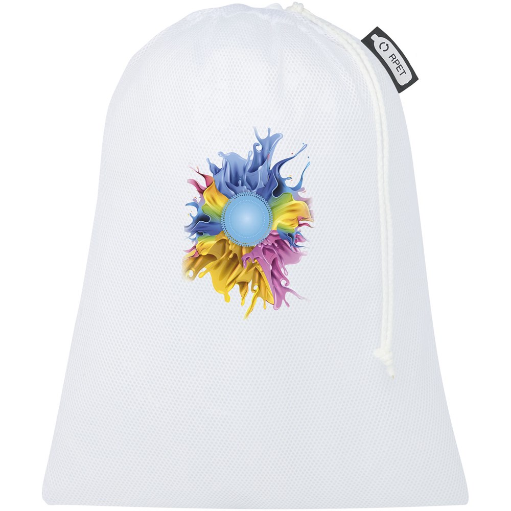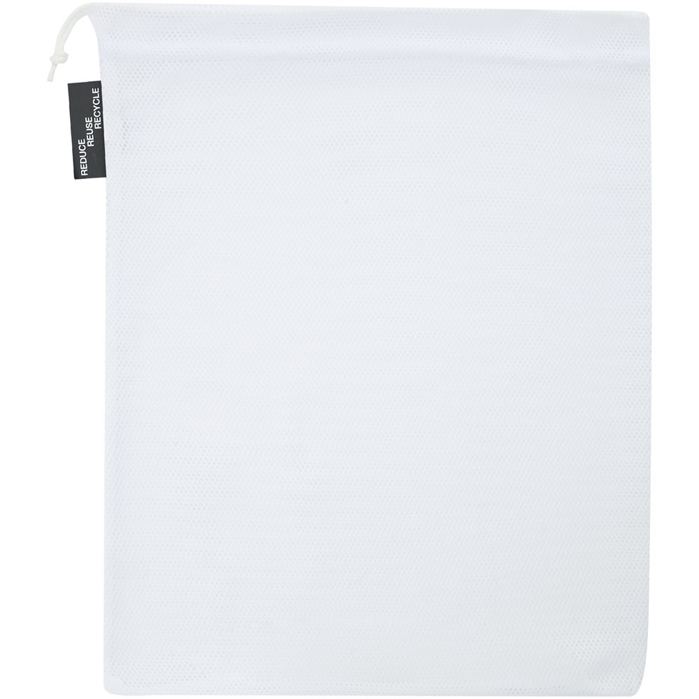 Set van drie herbruikbare tassen voor het meenemen van verse boodschappen, gemaakt van 100% gerecycled 60-65 g/m2 polyester, met handige koordsluiting. Verkrijgbaar in de maten: 15x21 cm, 25x32 cm, 30x41 cm. Het gebruik van deze tas levert een milieuvriendelijke bijdrage aan de vermindering van plastic tassen. De duurzaamheid garandeert herbruikbaarheid en wasbaarheid, zodat de hygiëne van de tas altijd gewaarborgd is. Decoratie over het hele oppervlak met sublimatie. Gemaakt in Europa.