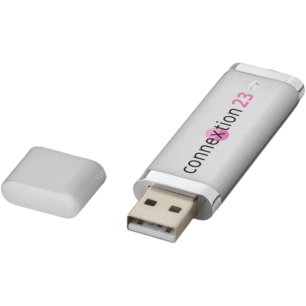 Flat USB stick. Een strak vormgegegeven USB stick voorzien van metalen uiteinden zorgen voor een professionele uitstraling van uw USB stick. Kunststof.