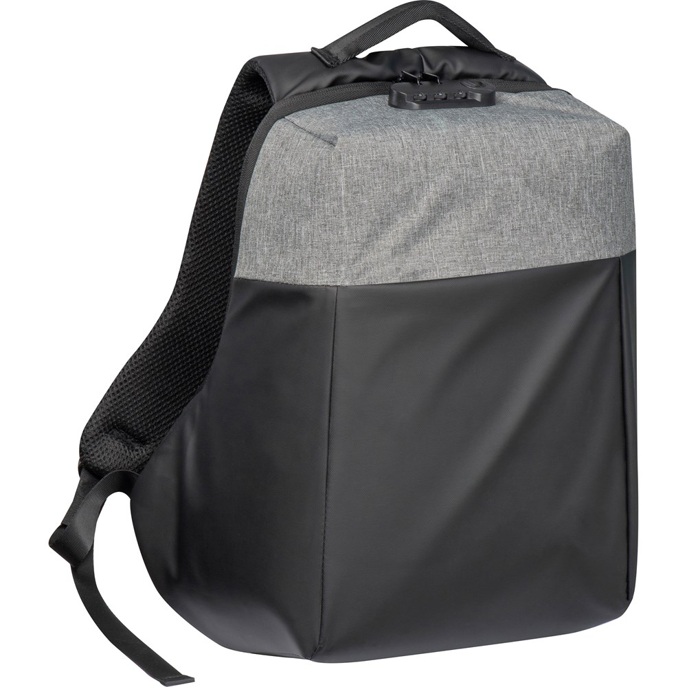 Ultieme trolley-ready anti-diefstal harde rugzak van 600D polyester met veel extra functies: cijferslot voor het hoofdvak, anti-diefstal vak op de rug, klein ritsvak op de gewatteerde schouderriem, gewatteerd ruggedeelte, gewatteerde draagriem handvat, laptopvak met voorvak en elastische banden, een USB-poort voor het aansluiten van een powerbank (niet inbegrepen), vier pennenlussen, opening voor koptelefoon, drie insteekvakken en een afneembare sleutelhanger. Met twee klittenbandsluitingen aan de binnenkant kan de rugzak geheel of gedeeltelijk worden geopend. Uw reclame wordt op de voorzijde geplaatst.