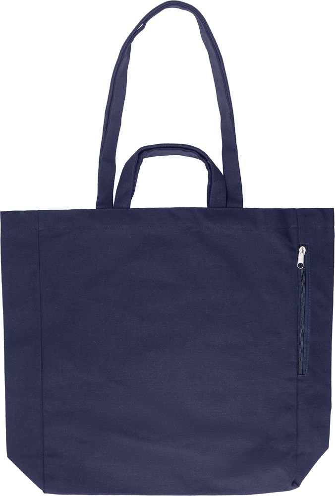 Polyester boodschappentas en gerecycled katoen (350 g/m²) met korte en lange hengsels. Zakje met rits aan de zijkant.