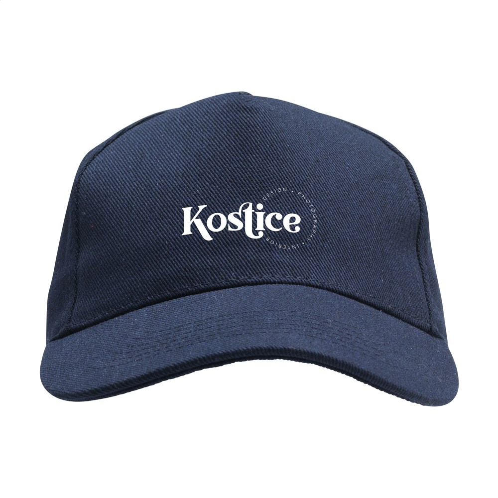 Comfortabele cap van extra zware kwaliteit: van 60% gerecycled katoen en 40% gerecycled polyester. Met voorgevormde klep en verstelbare, metalen clipsluiting aan de achterzijde. Deze cap met 5 panels heeft een gebogen klep, geborduurde oogjes voor ventilatie.