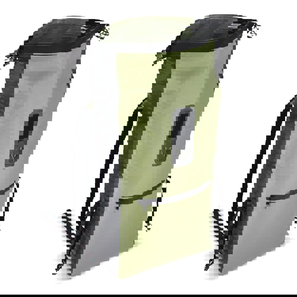 Verstelbare, weersbestendige rugzak gemaakt van sterk materiaal. De oprolbare top kan op twee manieren afgesloten worden voor extra flexibiliteit. De gelaste naden houden de inhoud droog en de gevoerde schouderbanden verhogen het draagcomfort.