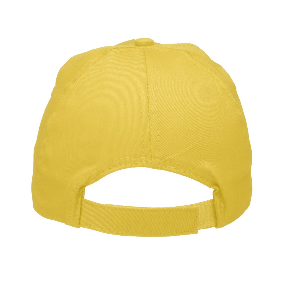 Baseballcap van 100% katoen met voorgevormde klep en klittenbandsluiting.