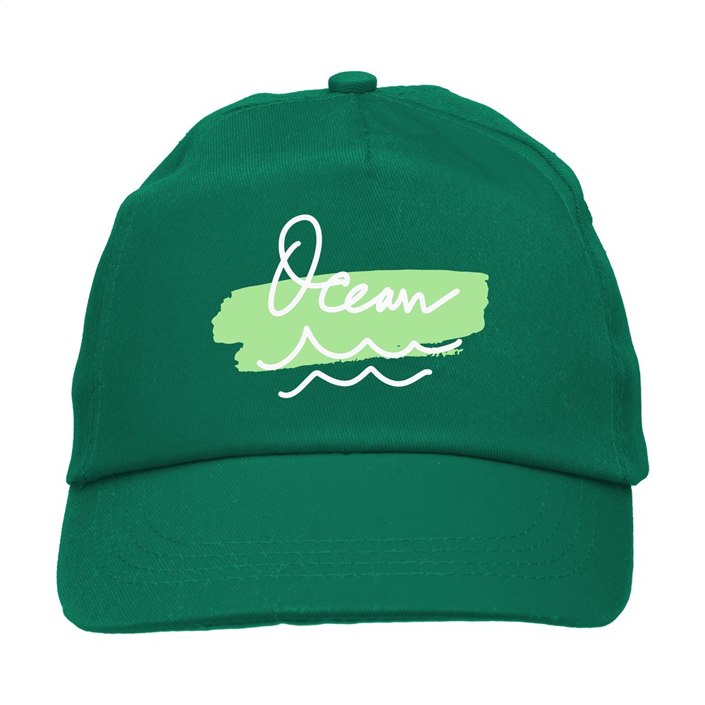 Baseballcap van 100% katoen met voorgevormde klep en klittenbandsluiting.