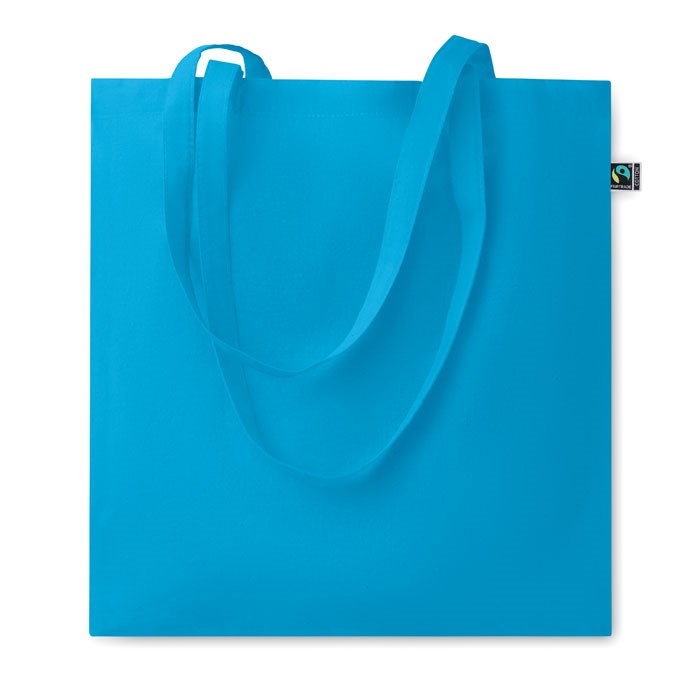 Boodschappentas van gekleurd Fairtrade katoen met lange hengsels. 140gr/m².
