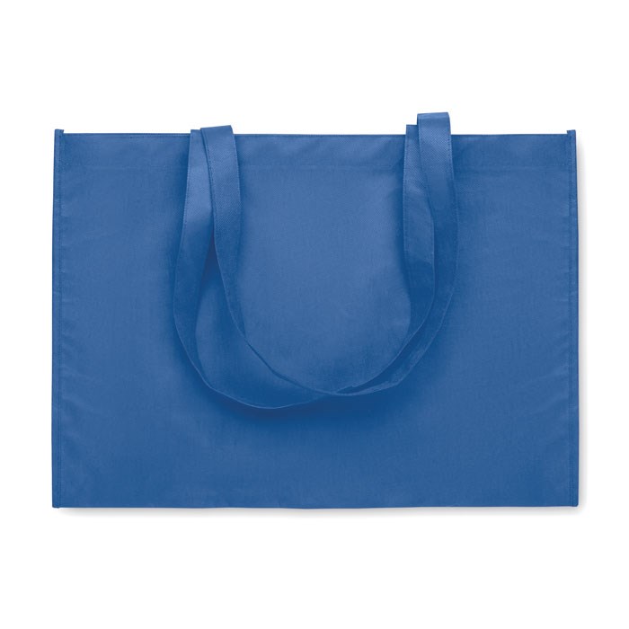Boodschappentas of strandtas van RPET non-woven met zijvouwen en lange hengsels. 80 gr/m².meer