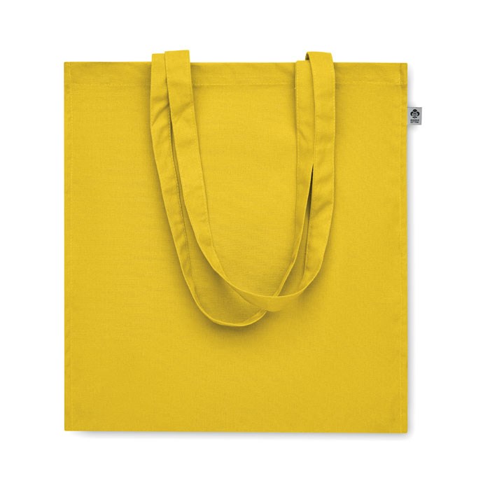 Boodschappentas van organisch katoen met lange hengsels en zijvouw. 220 gr/m².