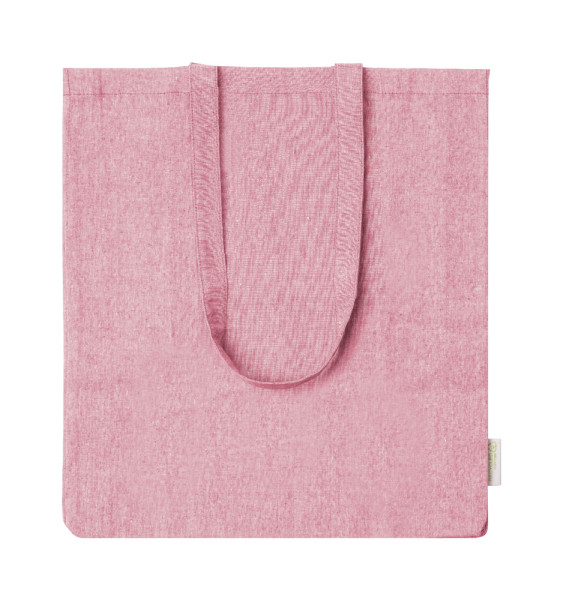 Boodschappentas van gerecycled katoen met kruisje, lange hengsels en opvallend label van gerecycled katoen. 100% gerecycled katoen, 140 g/m².