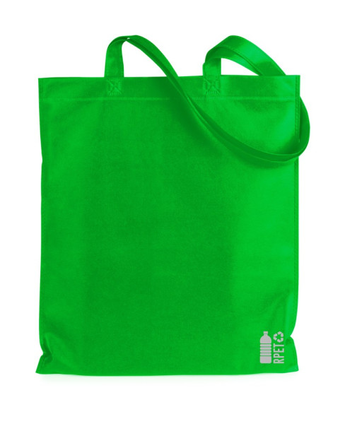 RPET- non-woven boodschappentas met lange hengsels, 70 g/m². Met kenmerkend RPET-teken.