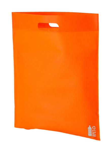 RPET-non-woven boodschappentas met gestanst handvat, 70 g/m². Met kenmerkend RPET-teken.