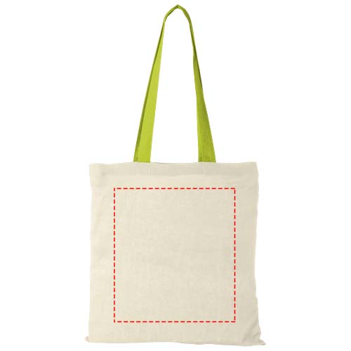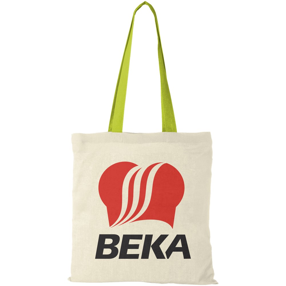Met zijn felgekleurde hengsels voegt deze tas kleur toe aan elk evenement, congres of festival. De Nevada 100 g/m² katoenen tote bag is een budgetvriendelijke en lichtgewicht tas met een open hoofdvak. Met zijn inhoud van 7 liter is deze tote bag perfect voor het meenemen van alledaagse benodigdheden, van een telefoon en portemonnee tot een favoriet boek of tablet. De 30 cm lange hengsels maken het gemakkelijk om deze tas op je schouder te dragen. Gemaakt in India en OEKO-Tex gecertificeerd. Geschikt tot 5 kg gewicht.