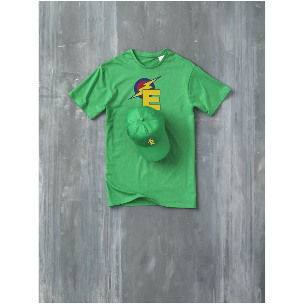 De Feniks 5-panelen pet heeft geborduurde oogjes voor verbeterde ventilatie, zodat je koel en fris blijft tijdens elke activiteit. Met een hoofdomtrek van 58 cm biedt hij een comfortabele pasvorm voor verschillende hoofdmaten. De stoffen klittenbandsluiting kan moeiteloos worden versteld voor de perfecte pasvorm. De Feniks pet is gemaakt van 175 g/m² katoenen keperstof en combineert duurzaamheid met een zacht, ademend gevoel.