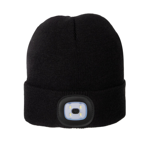 Beanie voorzien van een LED lamp in de omslagrand. One size fits all