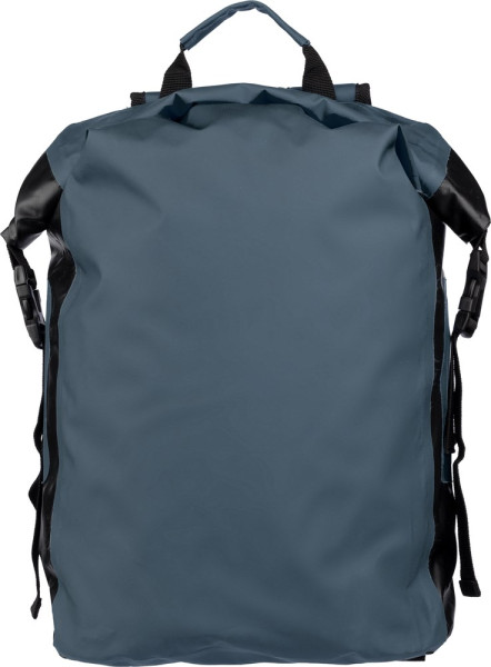 Waterafstotend zeildoek (250D) roll-top rugzak met een groot compartiment. Verstelbare verstevigde riemen en een verstevigde achterkant, samen met een handvat bovenop en een gespsluiting.