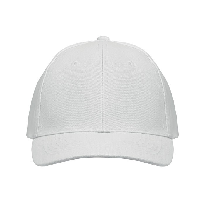 Baseballpet met 6 panelen van geborsteld katoen 260gr/m² met zilverkleurige stalen gesp en 6 geborduurde oogjes in bijpassende kleur. Maat 7 1/4.
