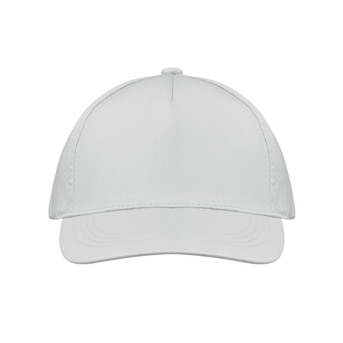 Baseballpet met 5 panelen van katoenen twill 150gr/m² met verstelbare klittenbandsluiting en 2 geborduurde oogjes in bijpassende kleur. Maat 7 1/4.