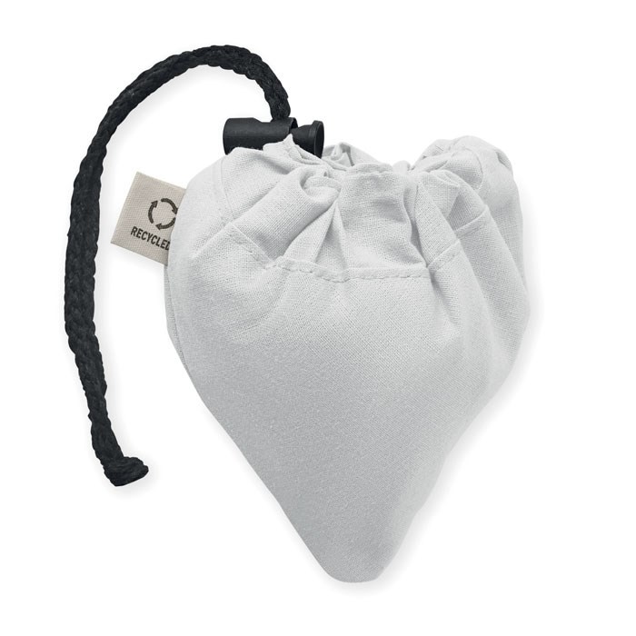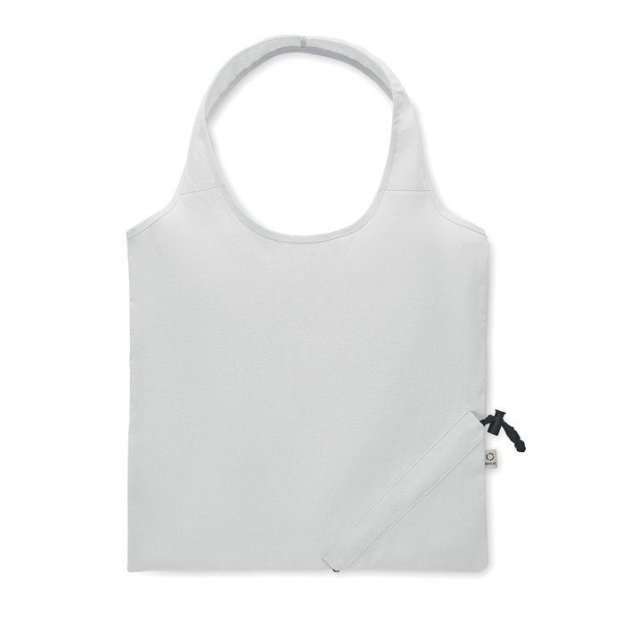 Opvouwbare boodschappentas van gerecycled pre-consumer katoen (70% gerecycled katoen en 30% RPET). 140gr/m². Dit artikel kan krimpen na het bedrukken.