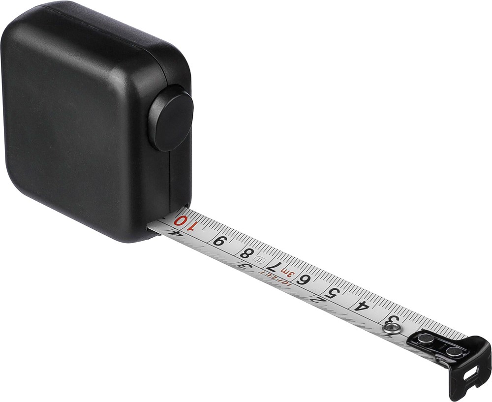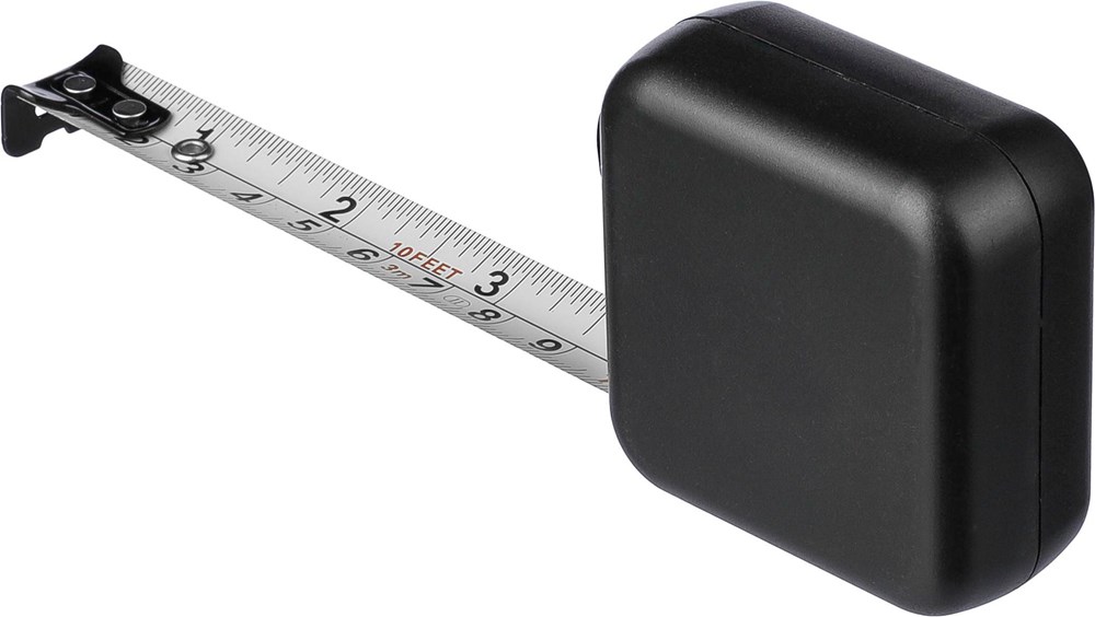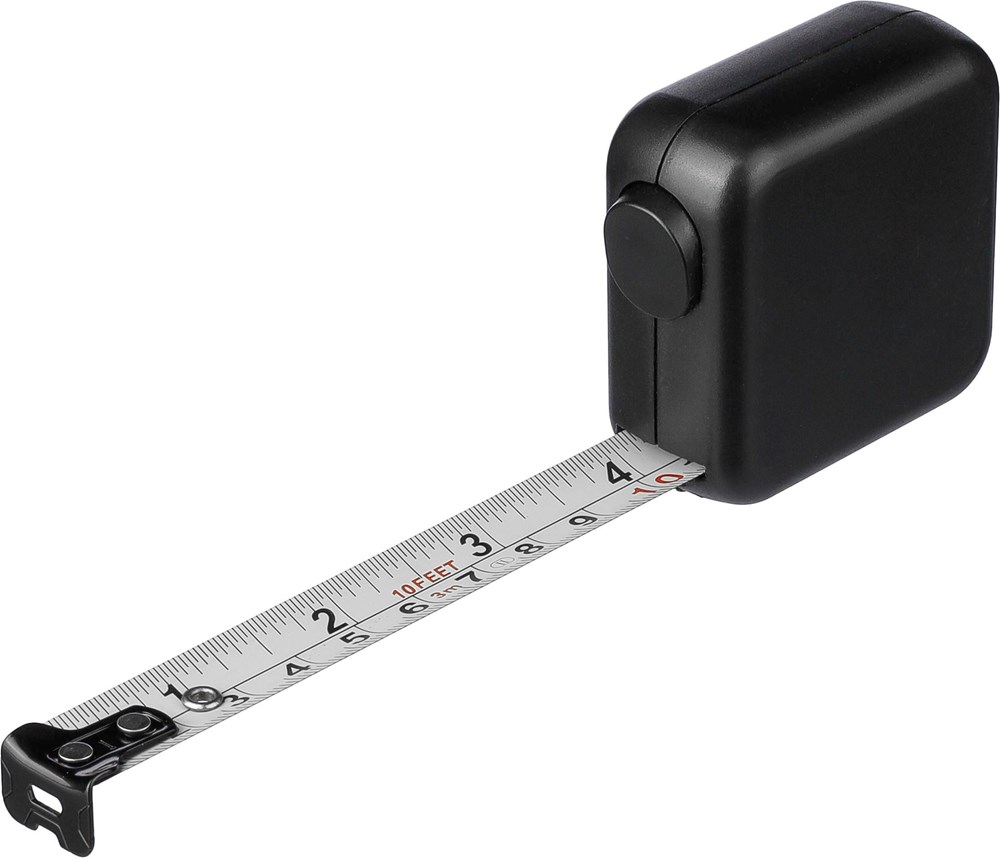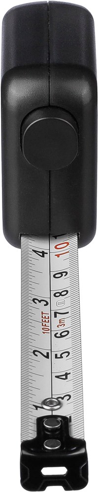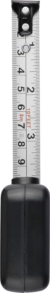 ABS meetlint. 3 meter lang. Lint van metaal (16 mm) bedrukt met zowel centimeters als inches. Ultrasoon geassembleerd (schroefloos). Voorzien van drukknop met vergrendeling. Per stuk verpakt in een bruin kartonnen doos.