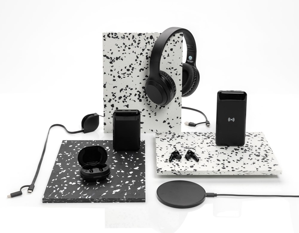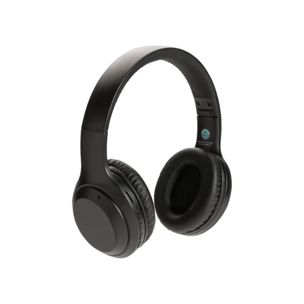 Opvouwbare draadloze hoofdtelefoon waarbij de hoes is gemaakt van RCS-gecertificeerd gerecycled ABS-plastic. RCS (Recycled Claim Standard) is een norm om de gerecyclede materialen in een product in de hele toeleveringsketen te verifiëren. Totaal gerecycled materiaal: 65% gebaseerd op het totale gewicht van het item.De draadloze hoofdtelefoon maakt gebruik van BT 5.0 voor een supersoepele verbinding en langdurige speeltijd. Het over-ear ontwerp van de oordopjes zorgt voor een perfecte geluidservaring. De ingebouwde lithiumbatterij van 200 mAh maakt een speelduur tot 6 uur mogelijk en kan in 1,5 uur volledig worden opgeladen. Werkafstand tot 10 meter. Met microfoon en pick-up functie. Artikel en accessoires PVC vrij. Inclusief PVC-vrije oplaadkabel van gerecycled TPE-materiaal.