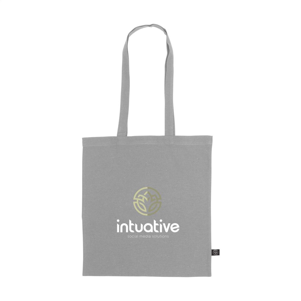 inkeltas met lange hengsels van 80% gerecycled katoen en 20% gerecycled polyester (150 g/m²). GRS-gecertificeerd. Totaal gerecycled materiaal: 100%. Inhoud ca. 8 liter.
