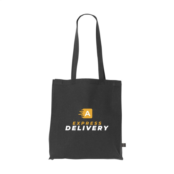 Stevige winkeltas met lange hengsels, van 80% gerecycled katoen en 20% gerecycled polyester (150 g/m²). GRS-gecertificeerd. Totaal gerecycled materiaal: 100%. Inhoud ca. 12 liter.
