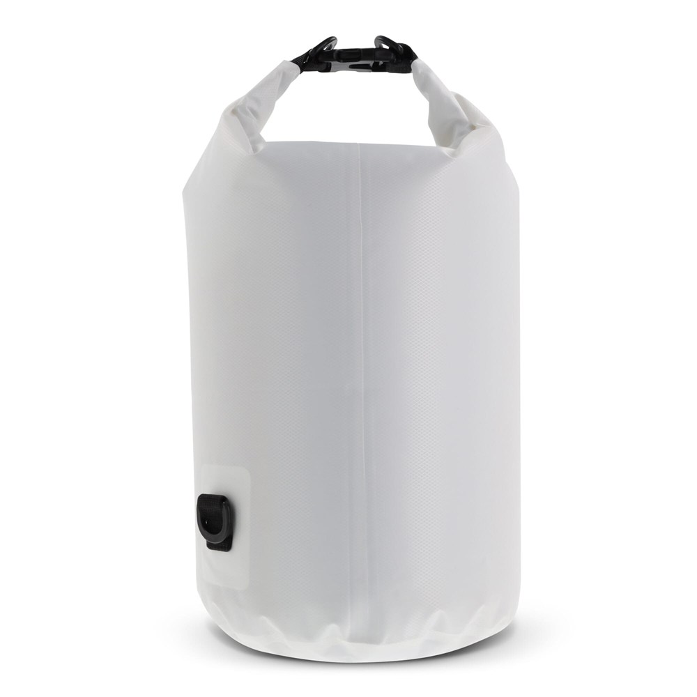 Waterwerende tas voor bijvoorbeeld op het strand, op de boot of tijdens een wandeling. Gevuld met lucht blijft de tas in noodgevallen ook tijdelijk op het water drijven. Met de extra ring en karabijnhaken is deze tas ook eenvoudig als schoudertas te gebruiken. Waterafstotend IPX6, bestand tegen hoge druk waterstromen uit alle richtingen. Houd de tas niet onder water.
