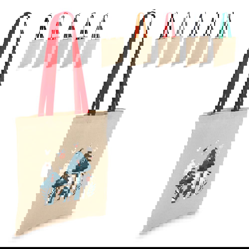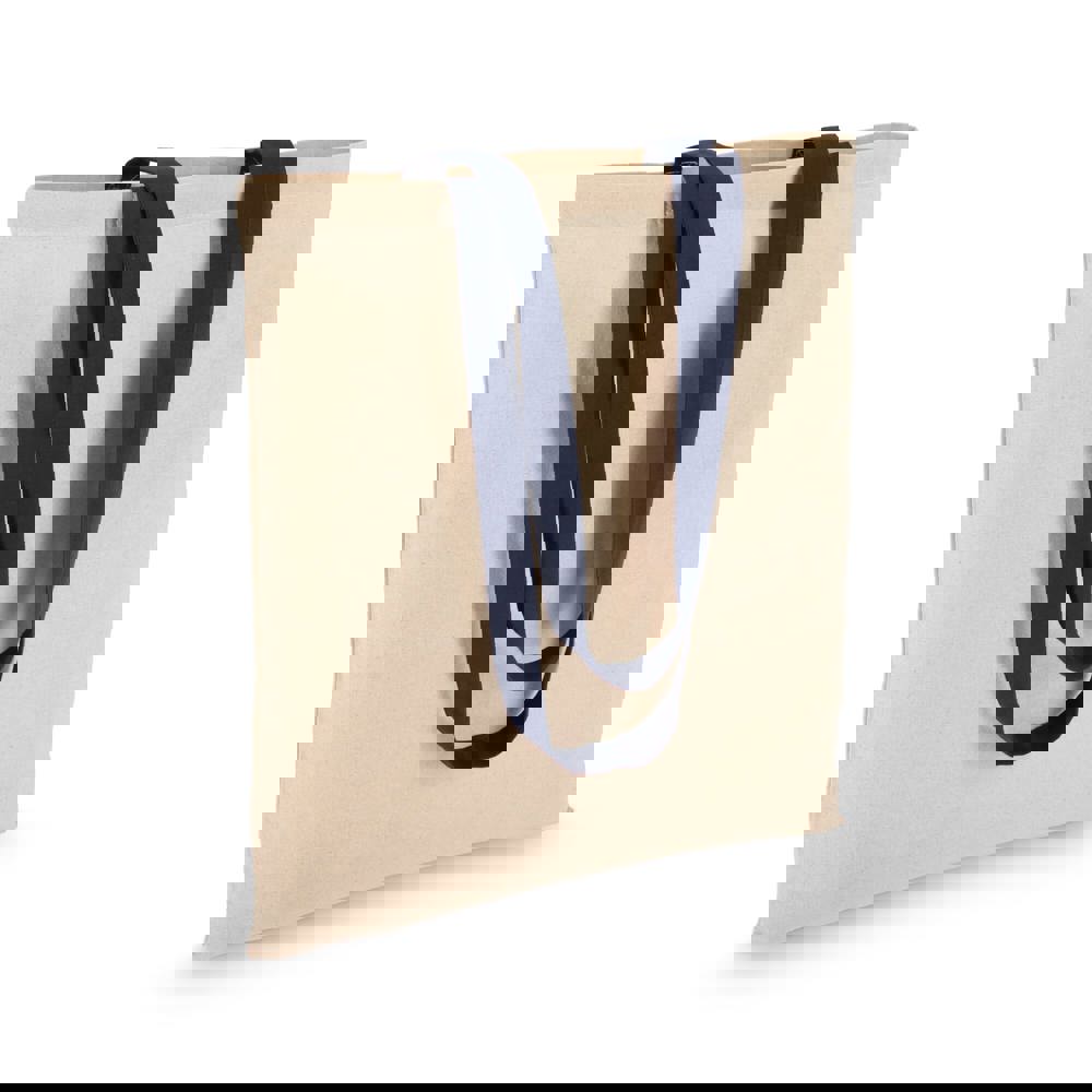 Klassieke katoenen tote van 140gsm met een naturel taslichaam en contrasterende gekleurde handvatten. Lange handvatten voor comfortabel dragen over de schouder. Oeko-Tex® gecertificeerd. Ideaal voor events, retail of dagelijks gebruik.