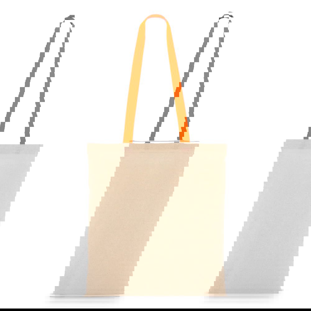 Klassieke katoenen tote van 140gsm met een naturel taslichaam en contrasterende gekleurde handvatten. Lange handvatten voor comfortabel dragen over de schouder. Oeko-Tex® gecertificeerd. Ideaal voor events, retail of dagelijks gebruik.