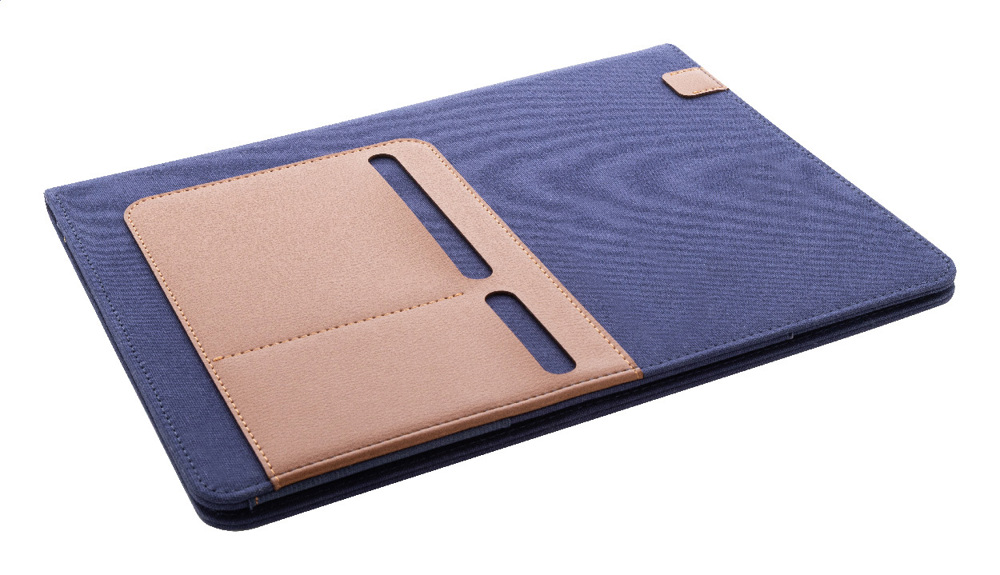 A4-formaat, gerecycled canvas en gerecyclede PU-leren documentmap met meerdere organizerzakken aan de voor- en binnenkant. Met 20 gevoerde vellen notitieblok in gerecycled papier. 70% gerecycled katoen en 30% RPET polyester.
