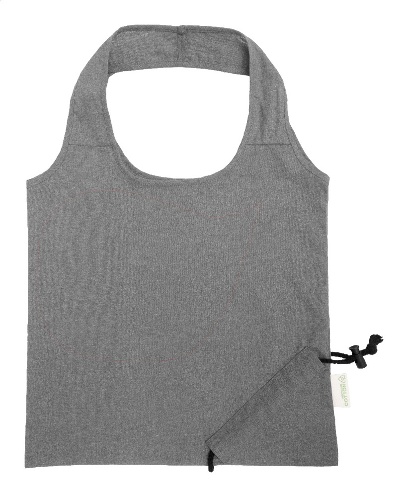 Opvouwbare boodschappentas van 70% gerecycled katoen en 30% RPET polyester, 140 g/m². Met onderscheidend gerecycled katoenen label.