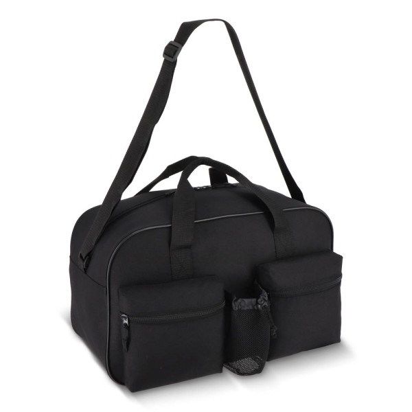 Sport- en reistas van duurzaam 600D gerecycled PET. Voorzien van een draaghandvat, verstelbare schouderriem, twee voorvakken met ritssluiting voor snelle toegang tot je belangrijkste spullen en een mesh vak voor je fles. De perfecte tas voor naar de sportschool of onderweg.