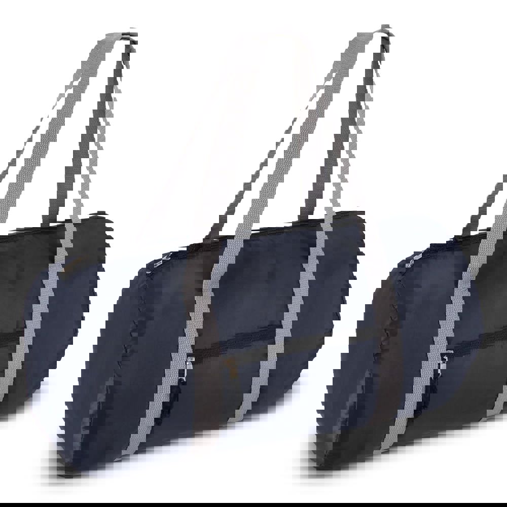 Sporttas van lichtgewicht 190T gerecycled PET, ideaal voor sport, korte reizen of een dagje sauna. Voorzien van een handig voorvak met ritssluiting en lange hengsels voor comfortabel dragen over de schouder. Opvouwbaar tot een compact formaat, gemakkelijk mee te nemen en altijd klaar voor gebruik.