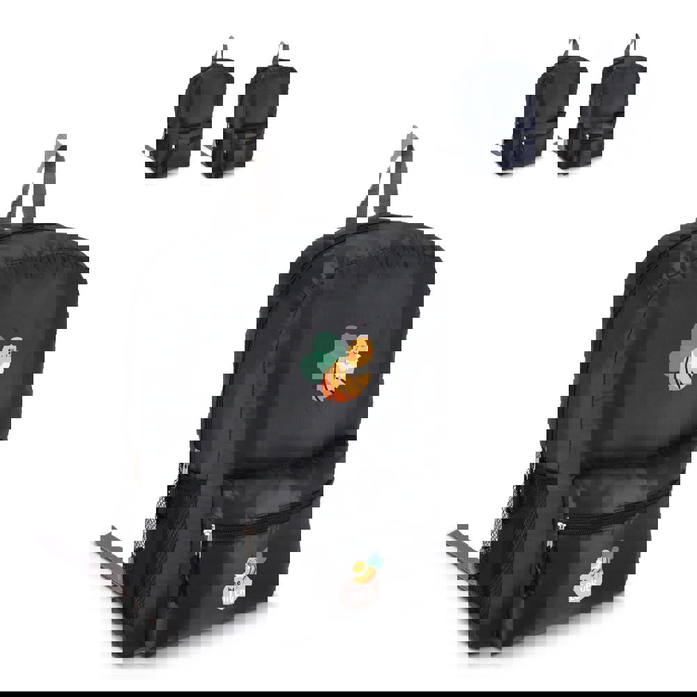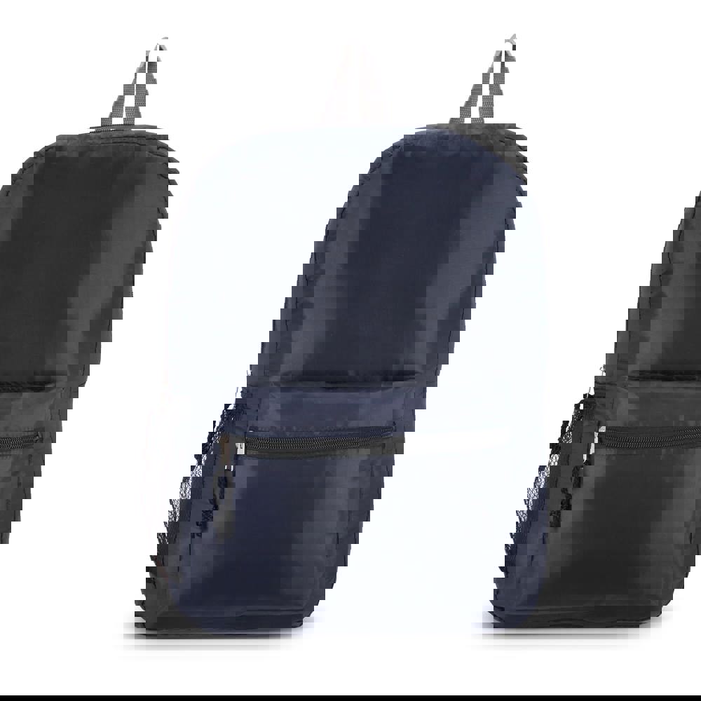 Lichtgewicht rugzak van 190T gerecycled PET. Met een voorvak met ritssluiting, verstelbare schouderbanden en een zijvak van mesh voor een fles, paraplu of andere benodigdheden. Opvouwbaar tot klein formaat, waardoor ideaal voor daguitstapjes en reizen.