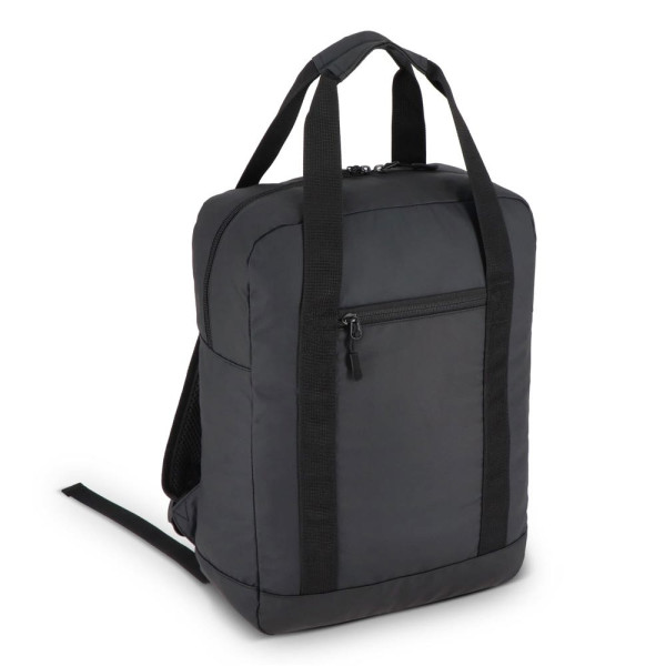 Rugzak in populaire vorm, gemaakt van duurzaam 600D gerecycled PET. Voorzien van verstelbare schouderbanden met reflecterende strips, gewatteerde rug, dubbele bovenhandvatten en een voorvak met ritssluiting. Voorzien van een gevoerd laptopvak voor laptops tot 15,6".