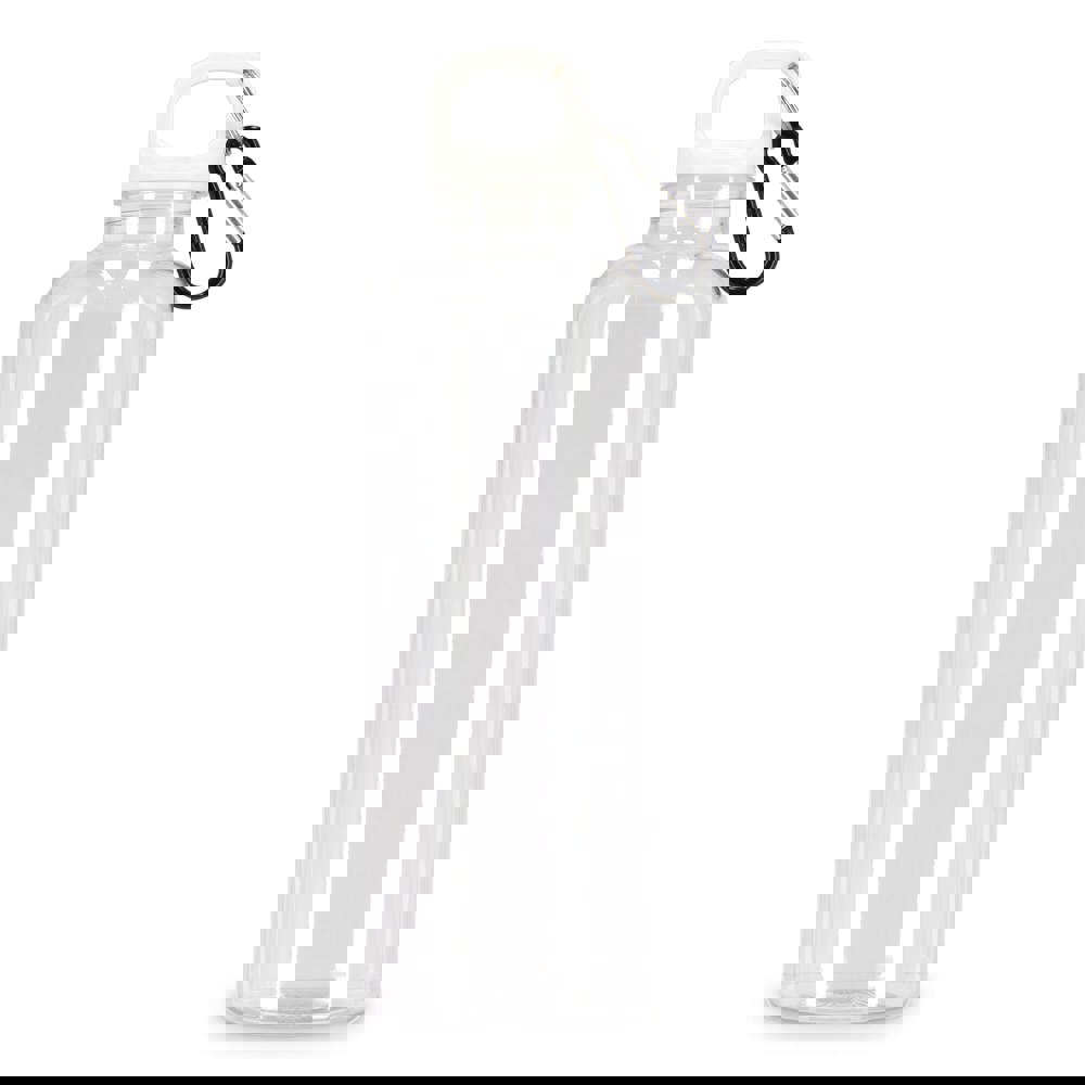 Blijf stijlvol en duurzaam gehydrateerd met deze 750 ml R-PET waterfles met transparante afwerking. Uitgerust met een handige karabijnhaakclip is hij perfect voor bevestiging aan rugzakken, handtassen of sporttassen. Verkrijgbaar in een reeks trendy en promotionele kleuren.