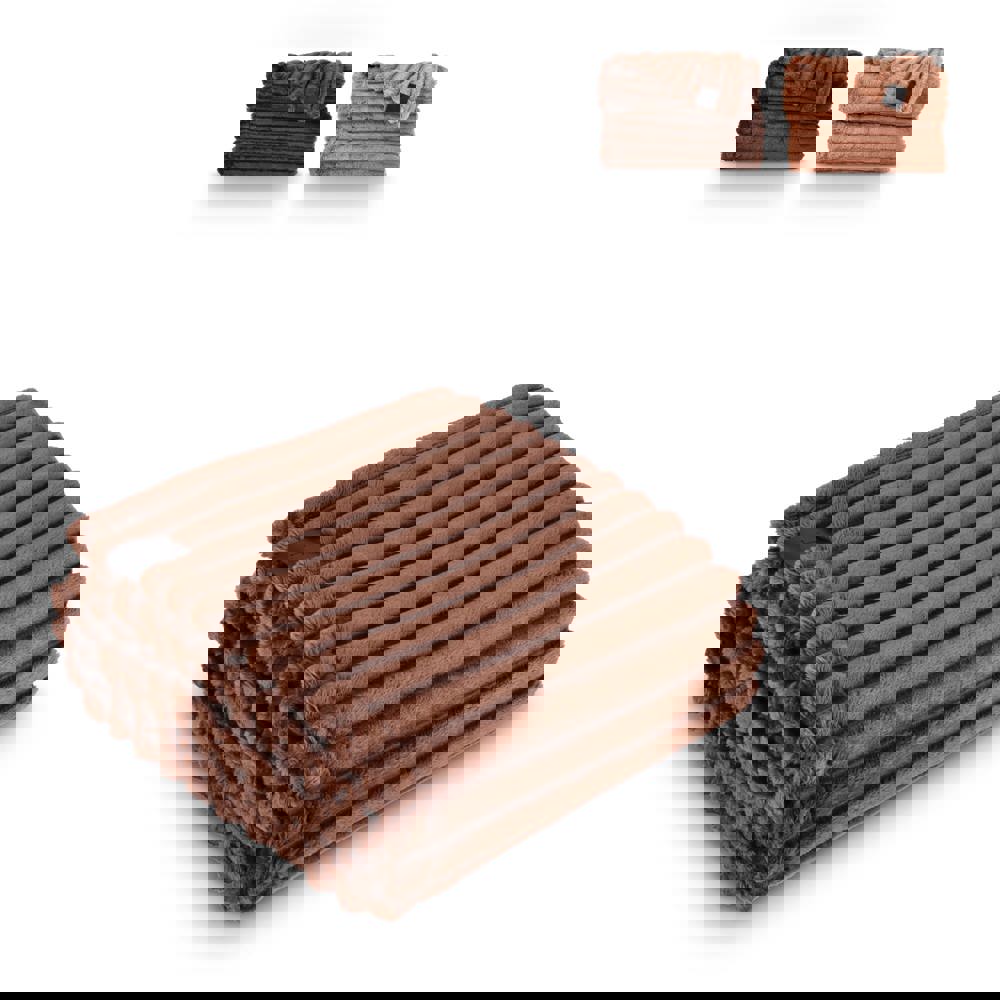 De Esther fleecedeken is zacht, warm en duurzaam, gemaakt van gerecycled polyester. De diepe moderne tinten en subtiele strepen geven een tijdloze uitstraling. Met 340 g/m² voelt hij luxe aan, is licht en makkelijk mee te nemen. Perfect voor bank, terras of buiten. Verpakt in luxe geschenkdoos. 130×170 cm.