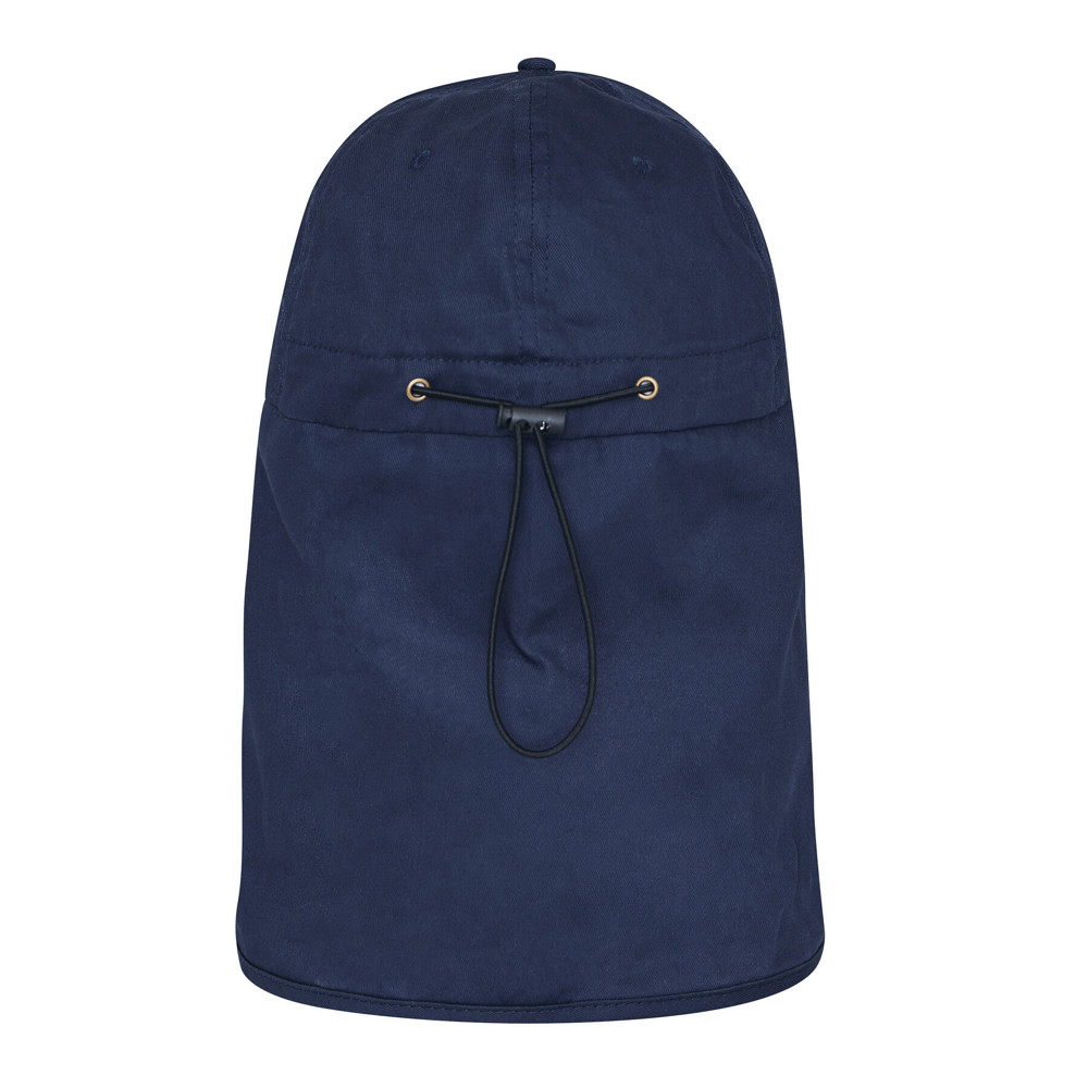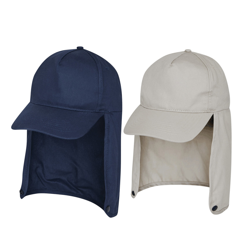 5-panel-baseballcap SOLGARD: verstevigd frontpaneel, 4 geborduurde ventilatiegaatjes, knop, aantrekkoord met stopper om aan de hoofdomtrek aan te passen, lange nekbescherming met drukknoopsluiting. Ideaal voor outdooractiviteiten en ter bescherming tegen zonnebrand, met UPF 50+ zonbescherming