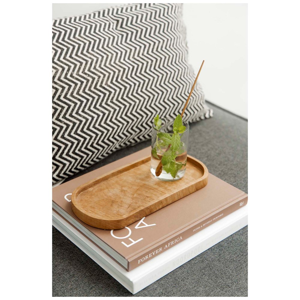 Ovaal dienblad gemaakt van de wortel van een teakboom, een afvalproduct van de teakindustrie. Het is afkomstig van gecertificeerde teakplantages in Indonesië en met de hand gemaakt door ambachtslieden in een kleine, landelijke werkplaats in Oost-Java. Geschikt om hapjes, snoepjes, koffie of thee op te serveren. Elk item heeft zijn eigen natuurlijke en unieke uitstraling. Voedselveilig. Afmetingen: 24 x 12 x 1,5 cm.
