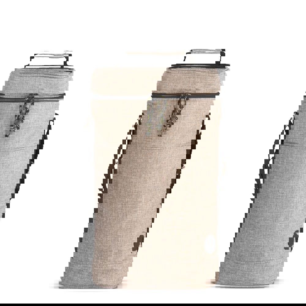 Ruime praktische koeltas in rPET materiaal, kan gebruikt worden voor bijvoorbeeld twee wijn- of 1,5 liter PET-flessen. Voorzien van een handvat en een verstelbare schouderriem. De tas is gemaakt van gerecyclede PET-flessen.