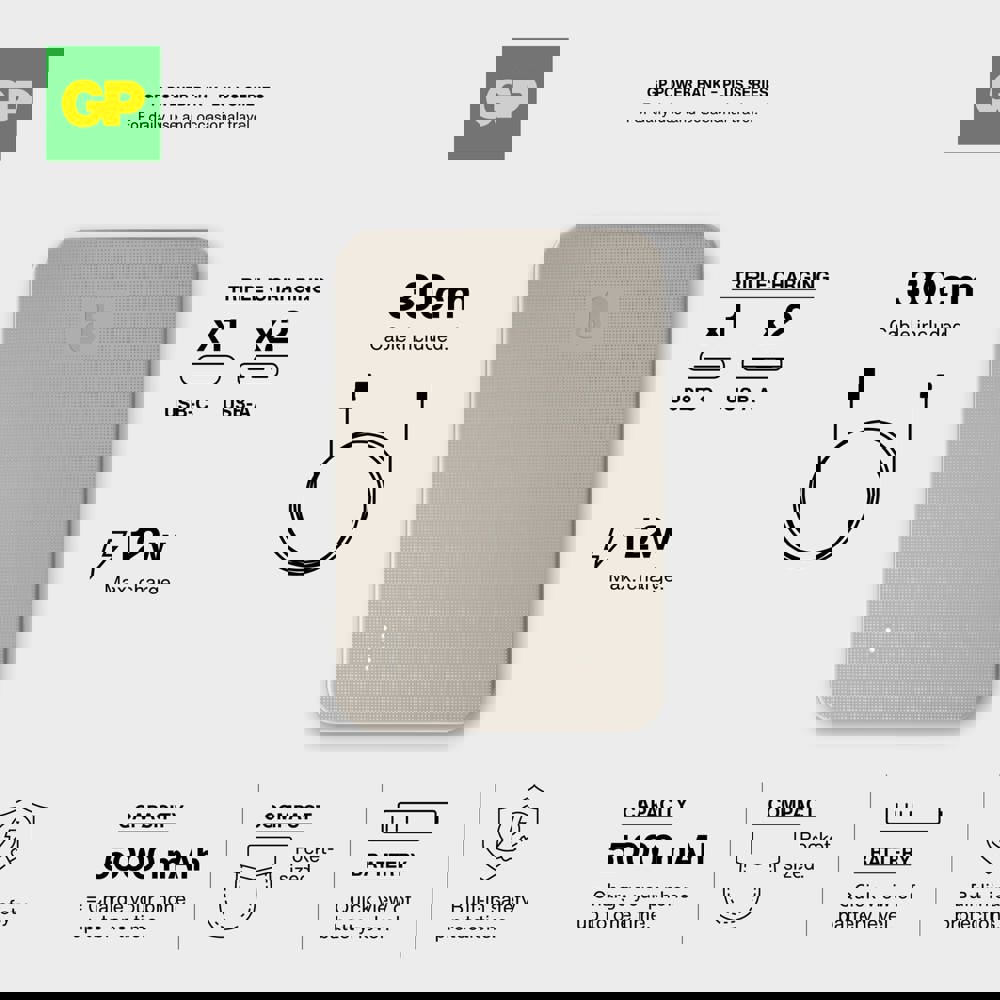 De GP PowerBank combineert betrouwbare stroomvoorziening met een stijlvol design. Met een capaciteit van 5000 kun je drie apparaten gelijktijdig opladen via 2x USB-A en 1x USB-C. De powerbank is uitgerust met een 8-voudige beveiliging voor veilig gebruik en een gegarandeerde lange levensduur. Ideaal voor professioneel en dagelijks gebruik.