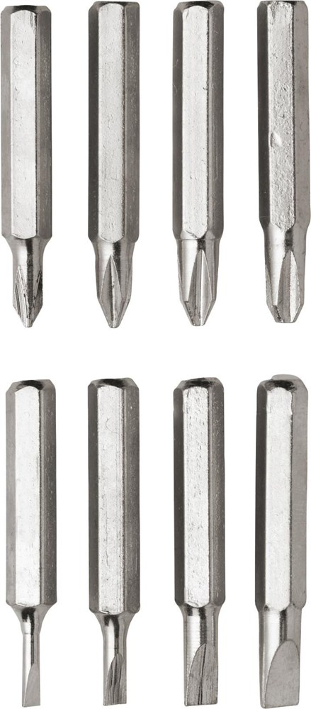 Aluminium schroevendraaierset met 8 bitjes en sleutelhanger met 3 LED lampjes, samen verpakt in...meer