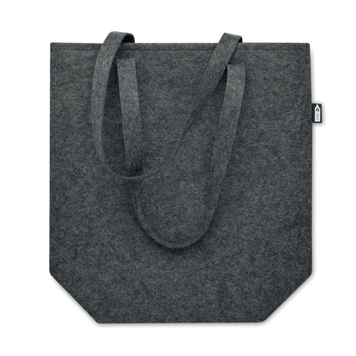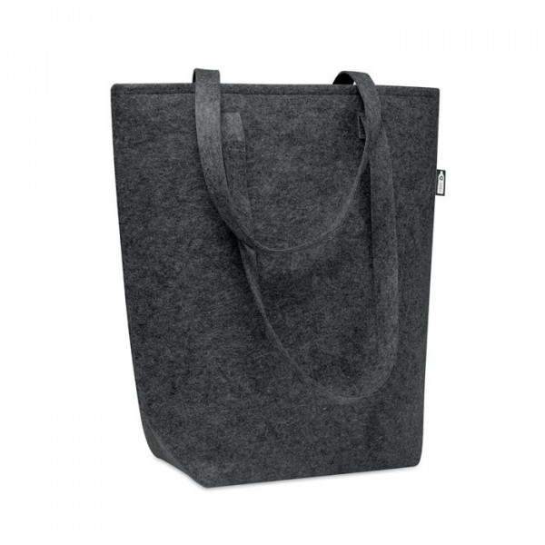 RPET vilten boodschappentas met lange draaghengsels en blokbodem. Dikte vilt: 2 mm.