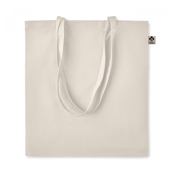 Boodschappentas van Organic katoen met lange hengsels. Een klassiek tote/draagtasontwerp gemaakt om je dagelijkse boodschappen of andere items in te vervoeren. Draag de tas in je handen of over je schouder met de lange hengsels. Gemaakt van 100% natuurlijk biologisch katoen 140 gr / m².