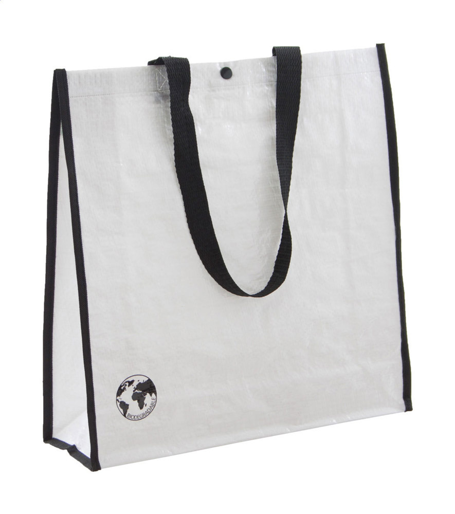 Biologisch afbreekbare boodschappentas met drukknoopsluiting. PP geweven 120 g/m².meer