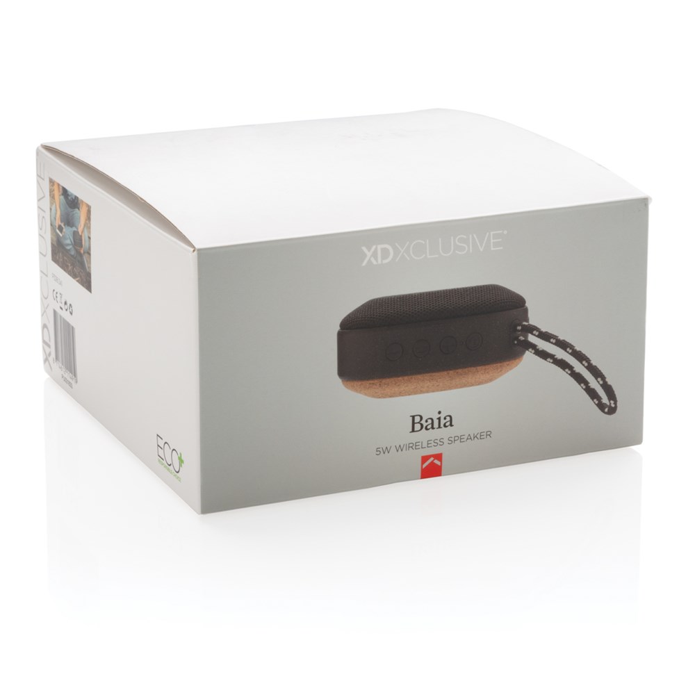 Duurzame 5W luidspreker gemaakt van zorgvuldig geselecteerde materialen. De luidspreker is gemaakt van duurzaam waterdicht fabric en de onderkant is gemaakt van kurk. De Baia levert een verbluffende geluids- en basservaring en dankzij de IPX 5 waterbestendigheid is hij geschikt voor gebruik in de tuin of om naar het strand te brengen. De Baia gebruikt BT 4.2 voor eenvoudige bediening en met een batterij van 1.000 mAh kunt u muziek non-stop 8 uur spelen. Bedrijfsafstand tot 10 meter. De Baia wordt verpakt in een plastic vrije verpakking om onnodig afval te voorkomen. Geregistreerd ontwerp®